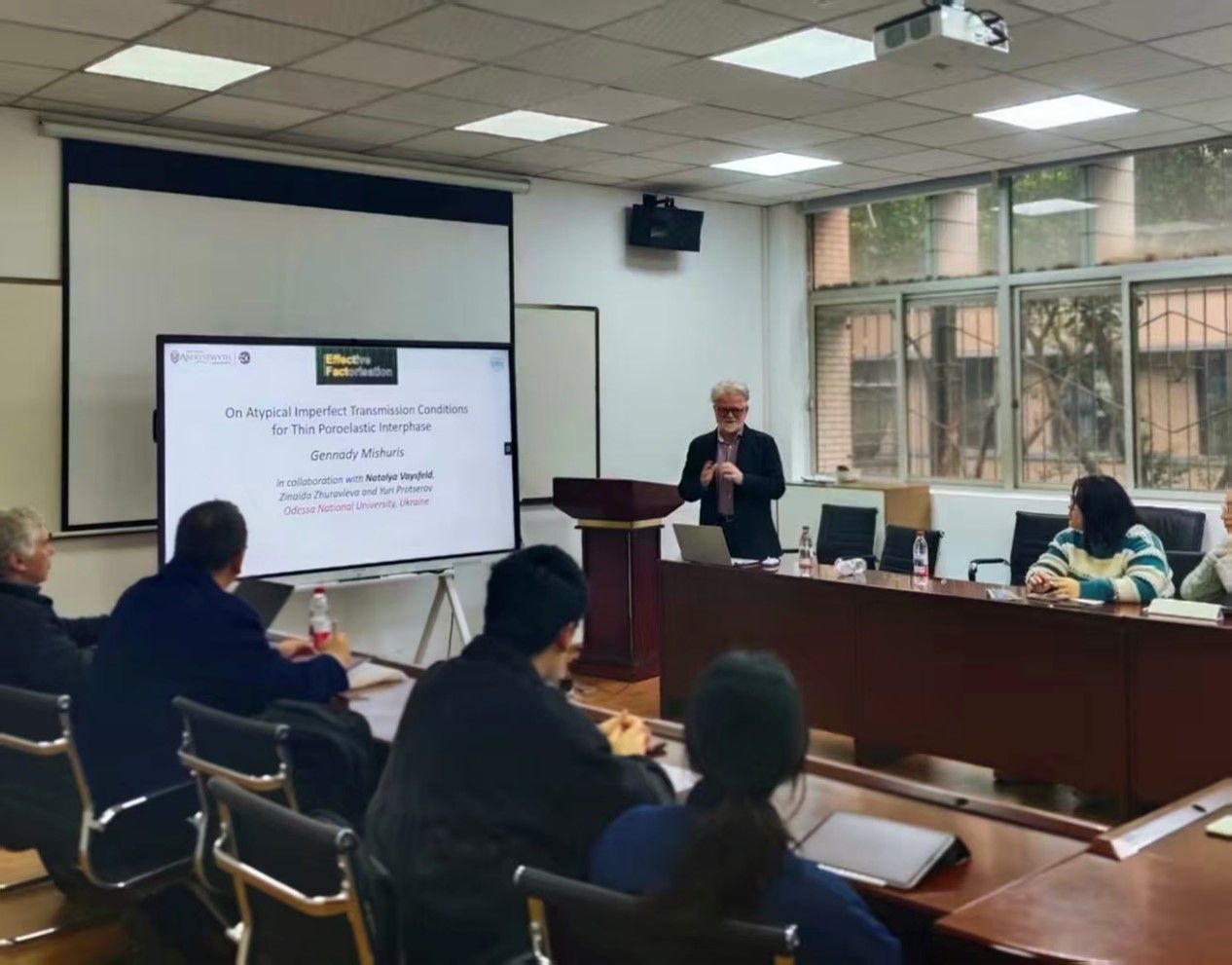 2026年1月16日下午,应海角网 邀请,英国阿伯里斯特威斯大学、威尔士学术院院士Gennady Mishuris出席由工程学部、国际合作与交流处及国际学习中心主办的工程科学前沿讲坛与力学前沿交叉全球学科研究系列讲座,作了题为“On Atypical Imperfect Transmission Conditions for Thin Poroelastic Interphase”的报告,报告由海角网 弘深杰出学者Fedor Borodich教授和工程力学系金晓清教授主持,工程学部师生30余人出席听讲。Borod...