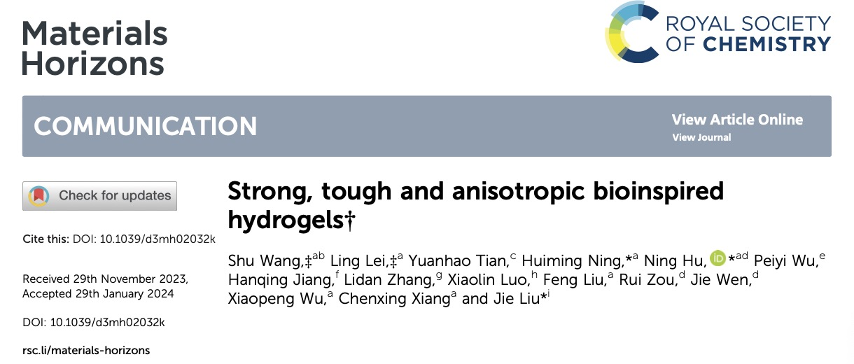 详情软材料如水凝胶可广泛应用于组织工程、软体机器人、可穿戴电子等领域。然而大多数传统水凝胶往往结构均匀无序且交联松散,导致力学性能差,严重阻碍了其实际应用。近年来,通过定向冷冻、磁场或电场、自组装和机械拉伸制备了各种具有增强力学性能的各向异性水凝胶,但操作复杂且功能单一,且大多水凝胶的力学性能仍然无法与各向异性的天然生物组织如韧带、肌腱等相媲美。这些生物组织由于其高度有序的分级微观结构,表现...