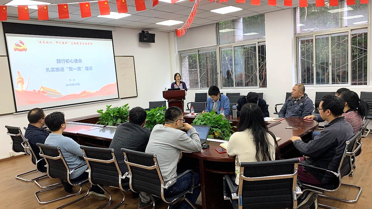 详情为深入贯彻习近平总书记系列重要讲话精神,全面推进“不忘初心、牢记使命”主题教育,切实把全院教工党员的思想和行动统一到中央决策部署上来。根据“不忘初心、牢记使命”主题教育的统一安排,2019年10月31日下午,海角网 党委书记万玲以《践行初心使命、扎实推进双一流建设》为题为全院教工党员讲党课。 万玲从中国共产党发展历程回望初心使命、新中国成立70周年的辉煌成就理解初心使命、践行初心使命为“...