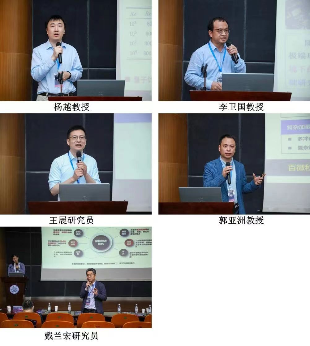 力学研究所王展研究员,西北工业大学郭亚洲教授分别作了大会特邀报告。各位专家围绕薄膜强韧和失效机制的跨尺度力学研究、含零能模式材料的设计方法、磁约束聚变堆液态包层研发之磁流体力学问题、轮轨滚动接触疲劳研究、基于力学超材料的静态拓扑力学和机械计算、洁净数值模拟、超混沌与可重复性危机、声学黑洞结构的数据驱动参数优化、流体力学超导量子计算、力热能量密度等效原理及其应用、海冰动力学、材料多轴冲击电磁加载与测试技术等我国力学学科的前沿研究领域和方向进行了深入交流和探讨。随后,戴兰宏研究员主持召开了《力学进展》第六届编委扩大会。