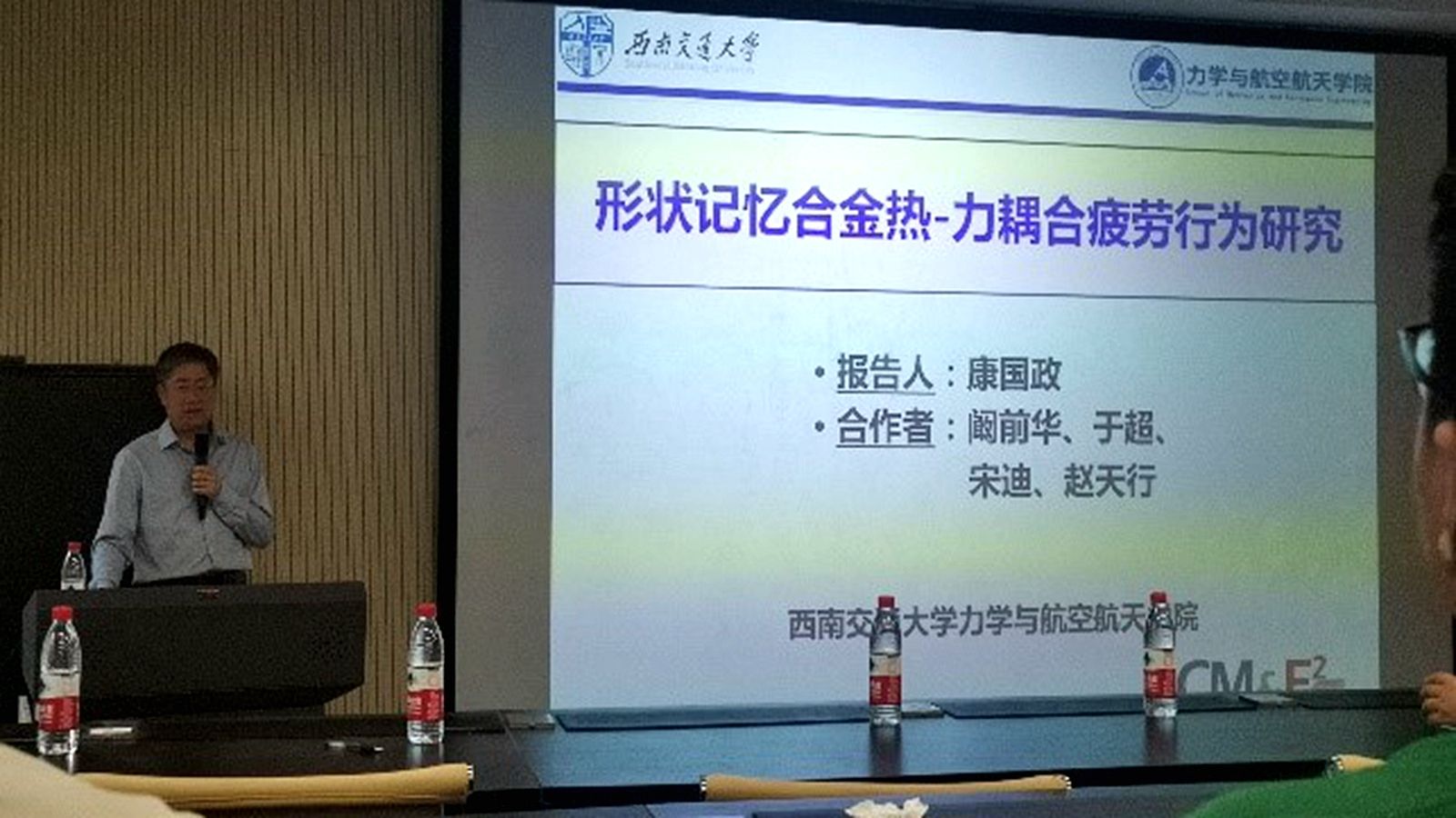 对四位专家的到访表示热烈欢迎,并对报告人做了简要介绍。戴兰宏教授是国家杰出青年基金获得者、新世纪百千万人才工程国家级人选、入选中科院百人计划,享受国务院政府特殊津贴。曾任力学所学位、学术委员会主任,现任中国力学学会副理事长、《力学进展》主编、中国科协爆炸力学首席传播专家。刘彬教授现为国际期刊《Forces in Mechanics》主编,《力学学报》副主编及《International Journal of Plasticity》和《Journal of Computational and Theoretical Nanoscience》编委,曾获国家杰出青年科学基金,国家自然科学二等奖,中国力学学会自然科学一等奖,中国力学学会青年科技奖,教育部新世纪人才计划,德国洪堡奖学金。康国政教授现任西南交通大学副校长,是国家杰出青年基金获得者(2010),教育部“长江学者”特聘教授(2015-2020),国家级领军人才(2015),德国“洪堡”学者(2009)。2010年获教育部自然科学二等奖1项(排名1/8),2012年入选享受国务院特殊政府津贴专家。汪越胜教授2000年获国家杰出青年科学基金,2007年受聘长江学者特聘教授,2010年入选新世纪百千万人才工程国家级人选。现担任国家自然科学基金委创新研究群体负责人、《固体力学学报》英文版副主编、中国力学学会监事和固体力学专委会副主任、中国材料研究会超材料分会常务理事、北京力学会理事长、教育部高等海角网