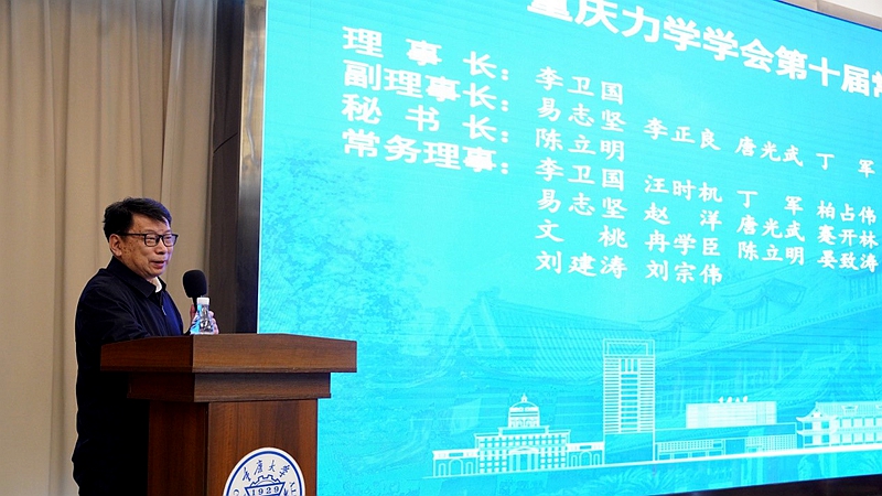李卫国教授为刘占芳教授、曾忠教授、严波教授颁发了名誉理事荣誉证书,并代表新一届理事会致辞。他提出:一是要坚持党建引领加强组织建设,引导广大科技工作者听党话跟党走。二是要坚持学术立会,着力人才培养,不断深化学术交流与合作,做大青年科技人才蓄水池,为重庆的发展贡献源源不断的力量。三是要坚守初心使命,服务经济社会,面向国家重大需求,提升学会的社会服务能力,推动产学研结合,在关键工程技术上有所突破、有所建树。四是要坚持创新发展,加强自身建设,充分发挥高端智库资源优势和学科创新引领作用,积极抢抓新机遇,主动应对新挑战,自觉扛起科技自立自强的使命担当。五是要充分认识到学术交流的重要性,科学离不开交流传播,创新离不开互鉴合作。学术交流活动是原创性学术思想和观点的孵化器与加速器。希望大家携手共进,让重庆力学学会在中国力学领域乃至世界力学领域发出更多、更洪亮的“重庆声音”,为力学学科发展和人才培养发挥更大的作用。