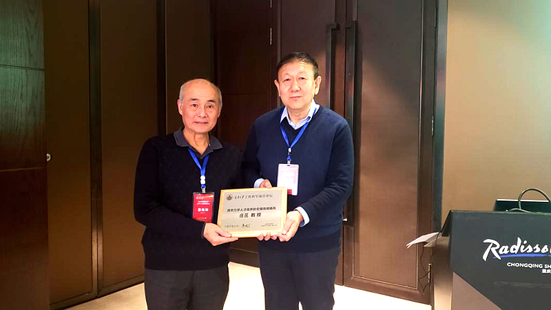 发展、学科建设三个层面的定位和举措,详细介绍了清华力学人才培养的成绩与经验。报告结束后,彭向和教授代表工程学部为庄茁教授颁发了纪念奖牌。