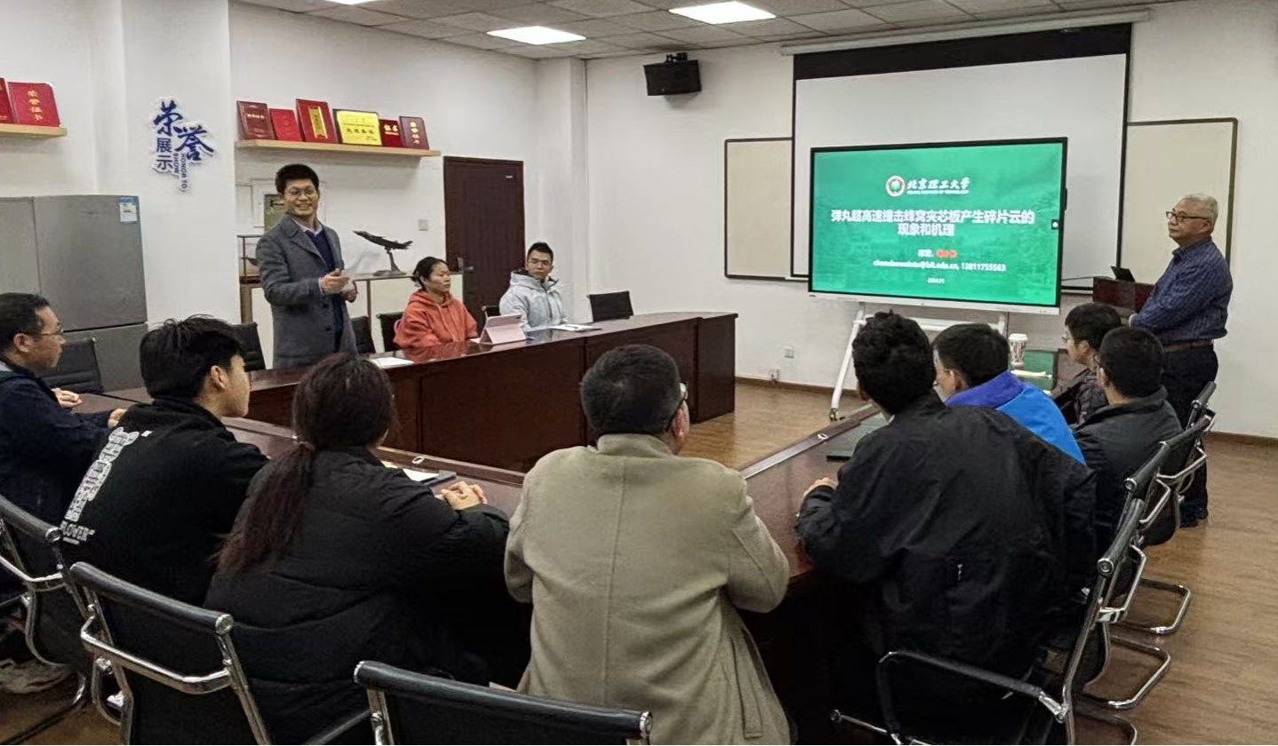 ,并于理科楼205会议室出席由工程学部主办的工程科学前沿讲坛,作了题为“弹丸超高速碰撞撞击蜂窝夹芯板产生碎片云的现象和机理”的报告。报告由海角网
