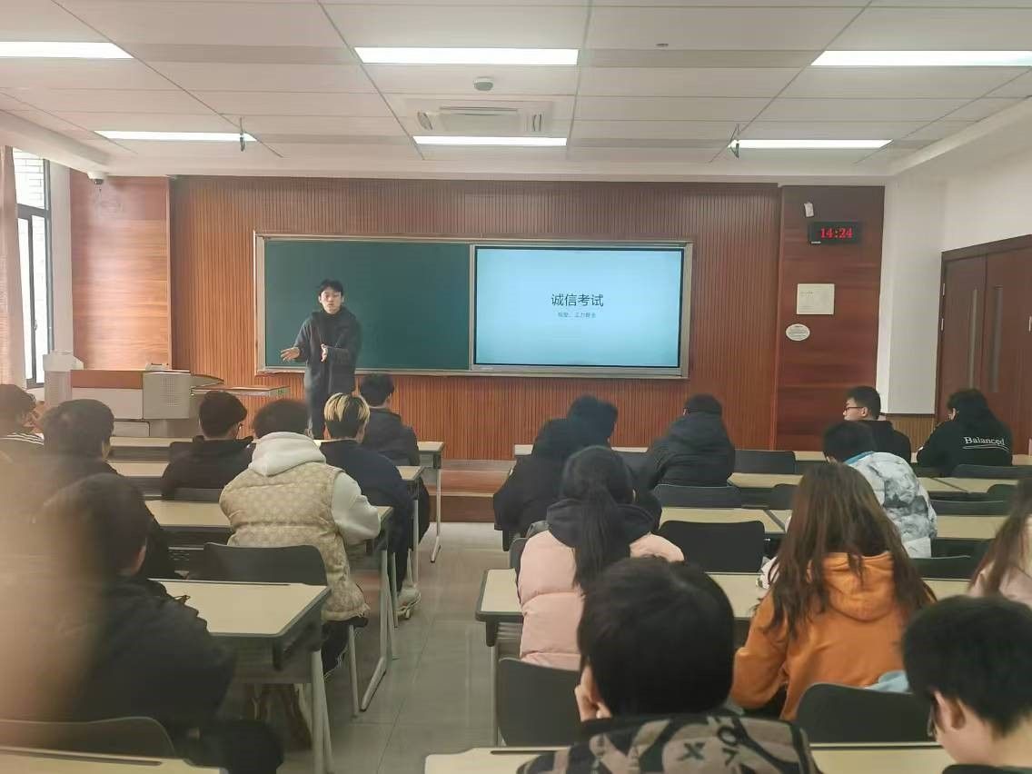 解读完推免文件后,奉书记就考试违纪作弊处分办法进行介绍。奉书记指出,考试作弊是严重的违规违纪行为,不仅会产生成绩作废、学分扣除、纪律处分甚至开除学籍的严重后果,还会影响到个人的职业发展和人生轨迹,强调同学们一定要具备明辨是非的能力。最后,书记鼓励同学们积极备考,诚信应考,取得年终的完美答卷。