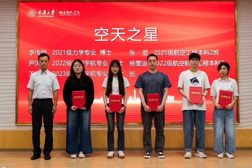 党委书记奉飞为2021级力学专业博士李传颖等“空天之星”获得者颁奖。