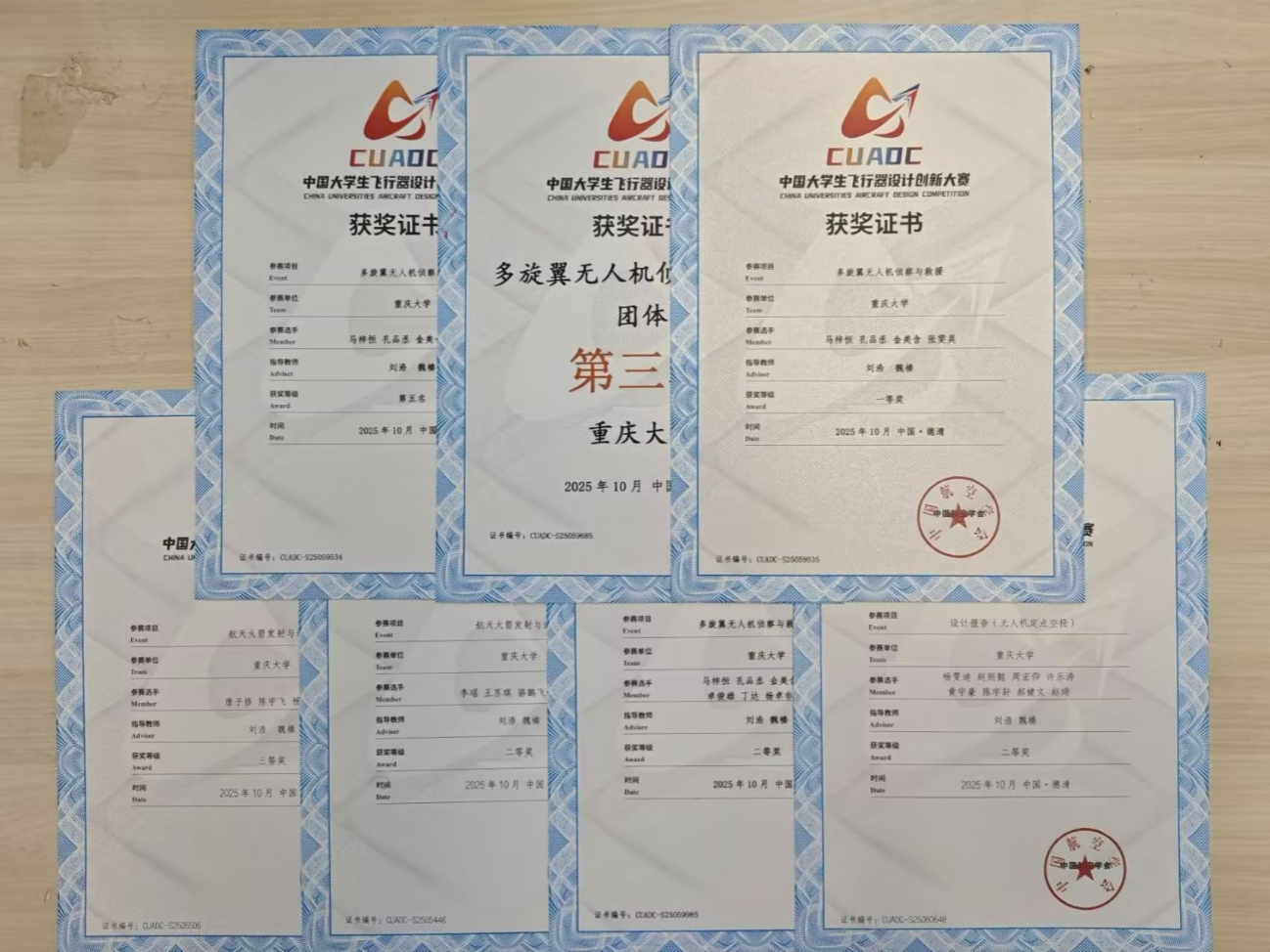 等不同专业背景的同学参与了多旋翼任务飞行、航天火箭发射与返回、固定翼无人机侦察与打击、微型固定翼限距飞行、无人机定点空投等五个极具挑战的项目。队员们在竞赛中沉着应战,灵活解决各种突发情况,凭借近一年的辛勤准备和刻苦训练,在与传统优势项目高校同台竞技中交出了满意的答卷,其中多旋翼任务飞行项目获国家级一等奖及团体二等奖,航天火箭发射与返回项目获国家级二等奖、三等奖各一项,无人机定点空投获国家级二等奖,固定翼无人机侦察与打击获国家级三等奖。优异的竞赛成绩是对全体指导老师与参赛队员辛勤付出与卓越才华的最佳褒奖,更彰显了海角网
