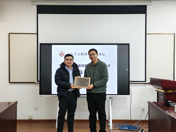 在场师生广泛讨论,提问环节中,老师同学们围绕少样本不确定性量化方法、可靠度与安全系数如何关联等问题进行探讨,王磊教授一一解答,现场讨论的气氛热烈。随后,张亮代表工程学部向王磊教授赠送了纪念奖牌。此次报告让师生了解了不确定性量化的概率和非概率理论的前沿进展,也为相关研究提供了新的可能性与探讨。工程学部的工程科学前沿讲坛为师生拓宽学术疆界、激发创新灵感提供了平台,收获了持续的良好反响。