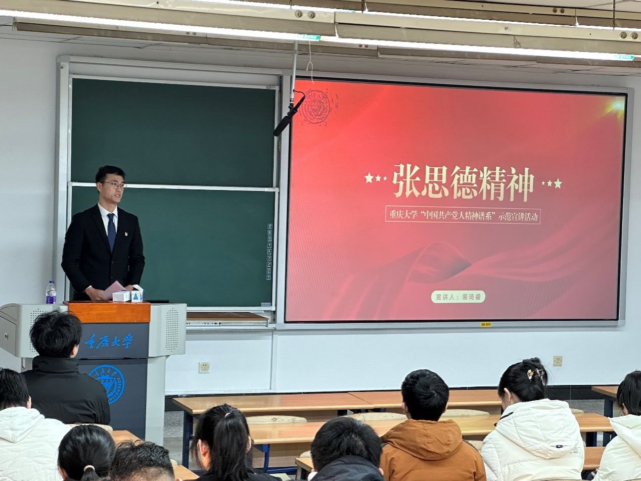 2022级研究生裴琦睿同学作主题宣讲,裴琦睿是退役士兵在校生,曾作为国旗护卫队成员参加新中国成立70周年国庆阅兵式。裴琦睿同学报告了张思德同志的生平和张思德精神的深刻内涵,还结合自己在部队的见闻体会和参加阅兵式的经历,诠释以人民为中心,全心全意为人民服务的宗旨,为在场的每一位同学带来了生动而深刻的精神洗礼。张思德同志的事迹和精神,激励着一代又一代共产党人为实现中华民族伟大复兴而努力。裴琦睿同学的宣讲,不仅让在场同学对张思德精神有了更深入的理解,也进一步激发了大家为实现中华民族伟大复兴而奋斗的决心和信心。