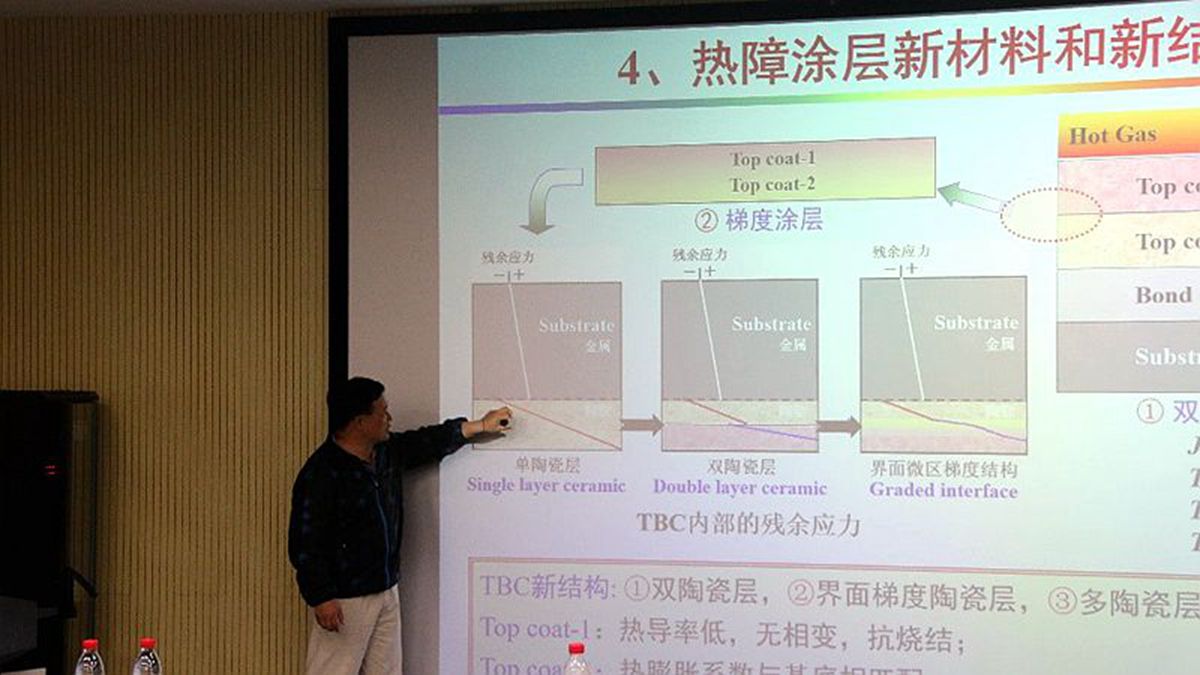 在报告中,曹学强教授首先介绍了自己课题组科研团队及主要仪器设备的基本情况,随后曹学强教授通过介绍热障涂层在航空航天、武器装备和交通运输等方面的应用,引出研究热障涂层的重要性,并介绍了等离子喷涂和电子束物理气相沉淀热障涂层制备技术热障涂层的制备技术、传统TBC材料8YSZ、热障涂层新材料与新结构和TBC失效的稀土荧光分析方法等在热障涂层材料领域的主要研究工作。报告最后曹学强教授分享了自身学习、工作、科研等经历,为同学们今后的科研工作提出建设性意见。