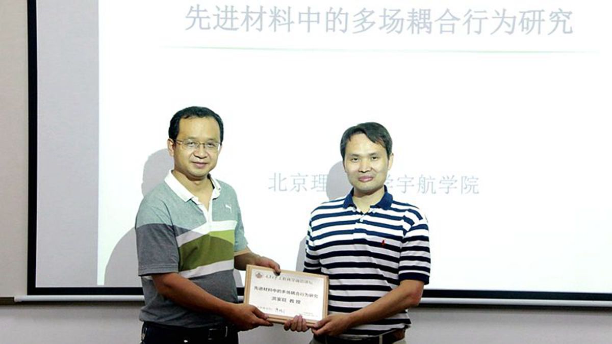 洪家旺教授做客由工程学部主办的工程科学前沿讲坛,并在A区理科楼205会议室做了题为“先进材料中的多场耦合行为研究”的学术报告。报告由李卫国教授主持,工程学部师生30余人参加了此次的学术讲座。
