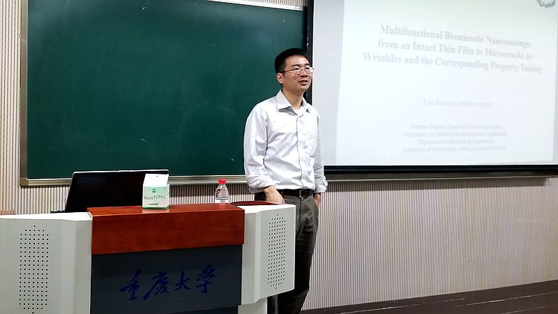 ,出席工程学部主办的工程科学前沿讲坛,并在8教110教室作了题为《Multifunctional Biomimetic Nanocoatings: from an Intact Thin Film to Micro cracks to Wrinkles and the Corresponding Property Tuning》 的学术报告。报告由海角网