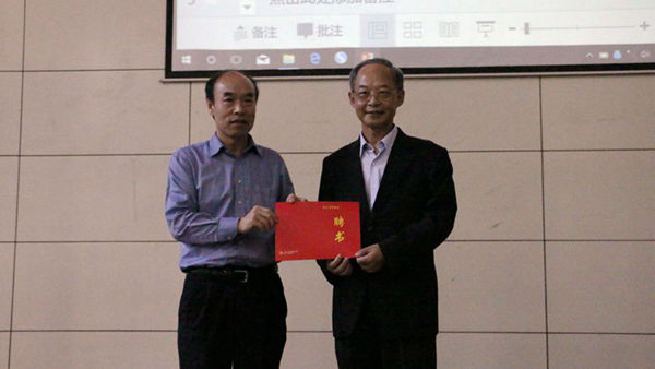 杨永斌院士首先作了关于“以移动车辆量测桥梁的动态特性”的大会特邀报告,介绍了一种间接提取桥梁动力特征参数的技术方法,并且提出了下阶段的研究重点。报告结束后刘占芳理事长代表重庆市力学学会向杨永斌院士颁发聘书,聘请杨永斌院士为重庆市力学学会名誉理事长。