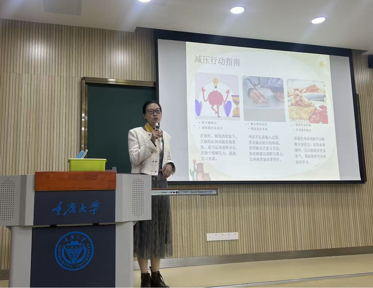 吕敏主任以“创造我的无限可能”为题,通过互动问答、呼吸训练及身体放松操等形式,深入浅出地传递了科学减压理念与实用技巧,不仅有效疏解了同学们的学业压力、调适了身心状态,更激励大家以从容心态、饱满热情逐梦科研征途、奔赴人生山海。