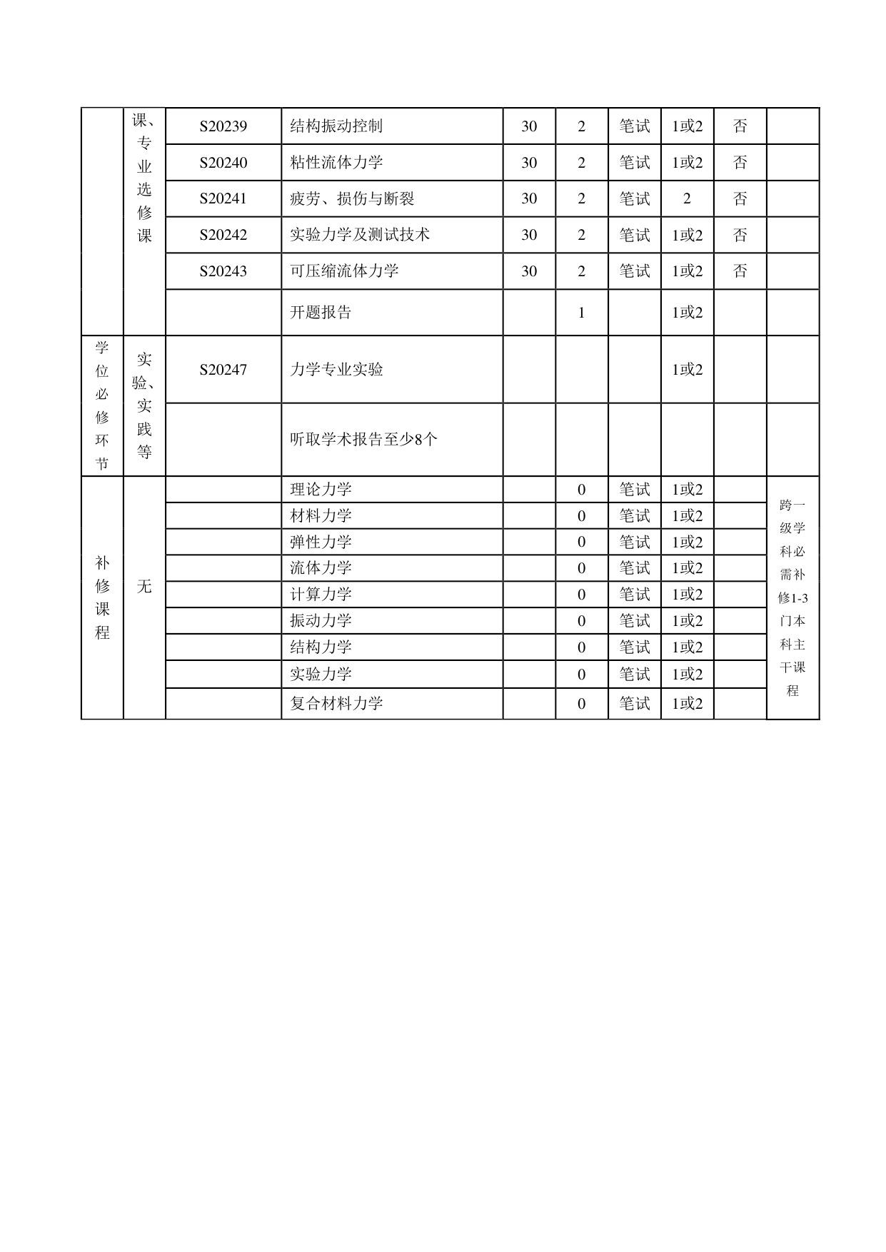 力学博士研究生培养方案