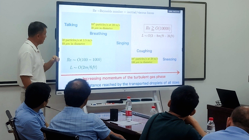 在报告中,李少凡教授介绍团队自2020年4月即开展了人咳嗽过程中携带病毒喷射液滴的传播形式及范围等模拟研究,其针对全球新型冠状病毒全球大流行期间对病毒传播形式的问题,重点探索了液滴湍流流动对携带病毒喷射液滴传播路径的影响,为界定呼吸类传染性疾病传播期间界定安全距离等公共卫生行为提供支撑。报告吸引了众多青年教师及本科生、研究生同学参加。
